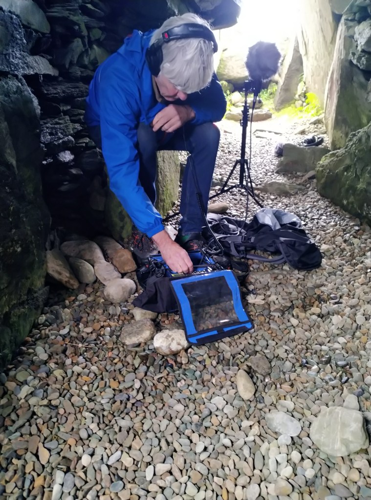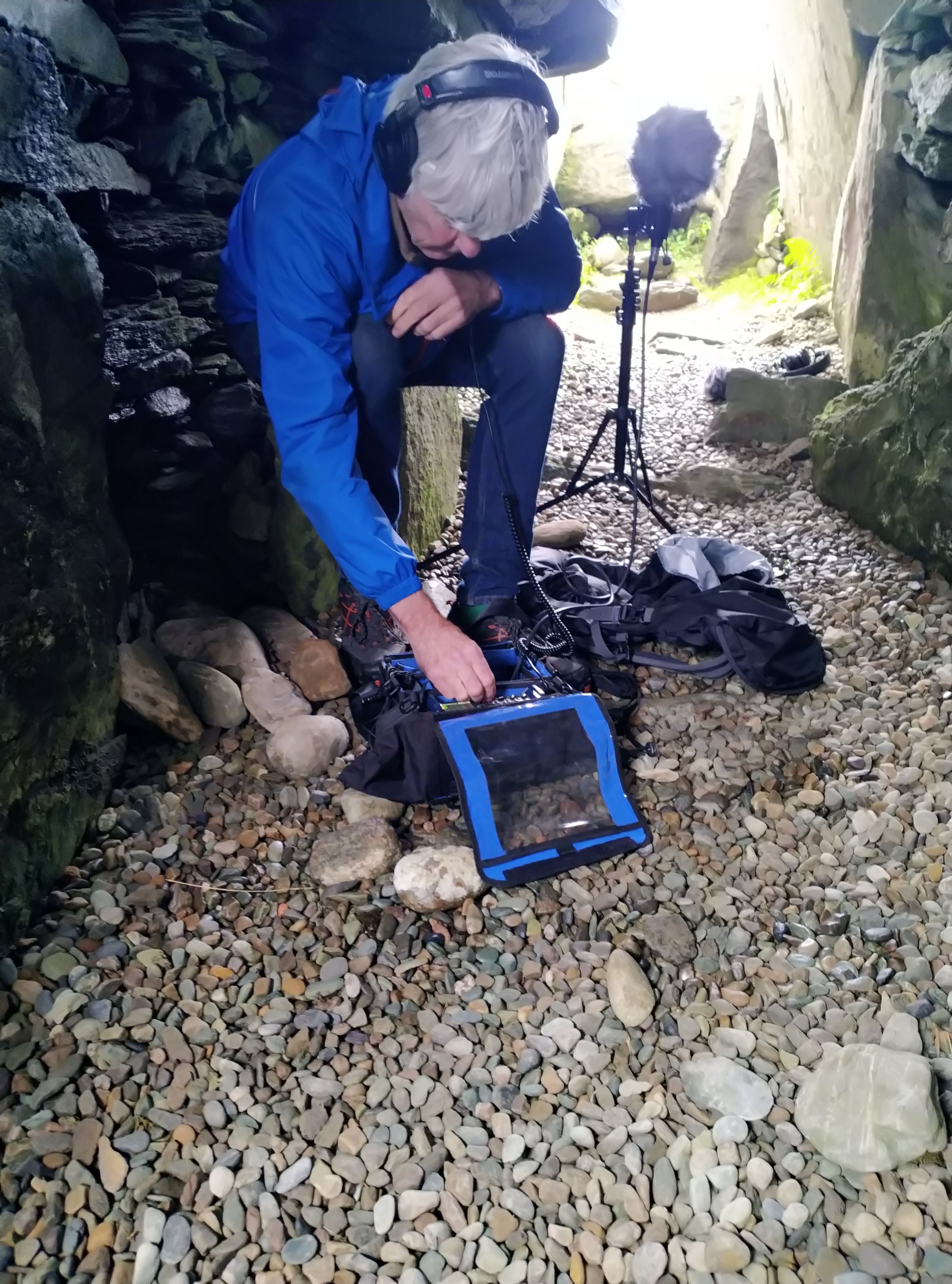 John setting up Ambisonic mic in cairn